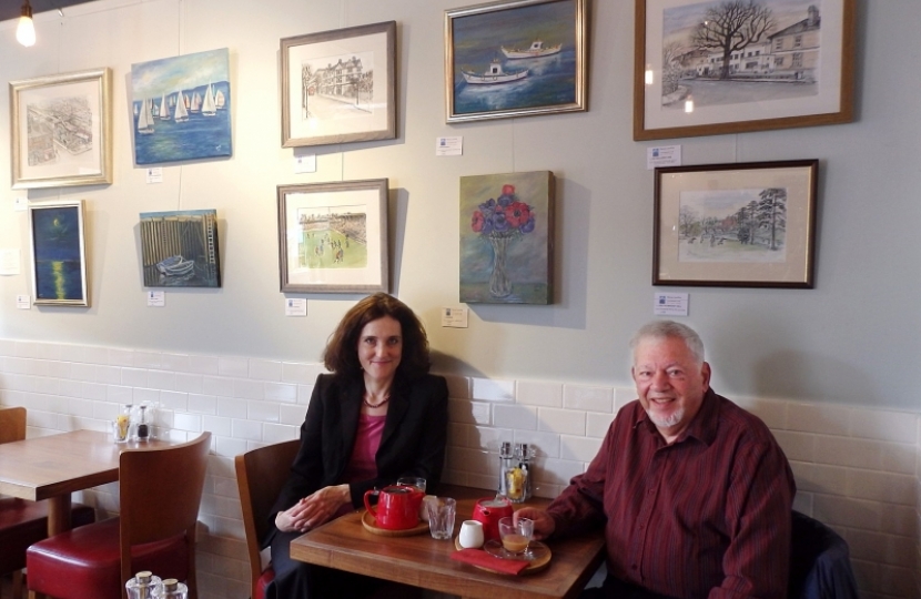 Theresa Villiers, MP for Chipping Barnet, has praised the work of local Barnet artist, Renos Lavithis, after visiting a display of his paintings and drawings in the Coffee Seeker café in Ballards Lane, North Finchley.