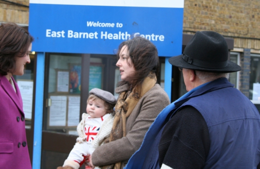 Theresa Villiers, Conservative Parliamentary candidate for Chipping Barnet, has been supporting the campaign to re-open East Barnet Health Centre (EBHC). It was closed for asbestos removal last spring and was expected to re-open after a few weeks. When the asbestos problem turned out to be more serious than expected, the closure dragged on.