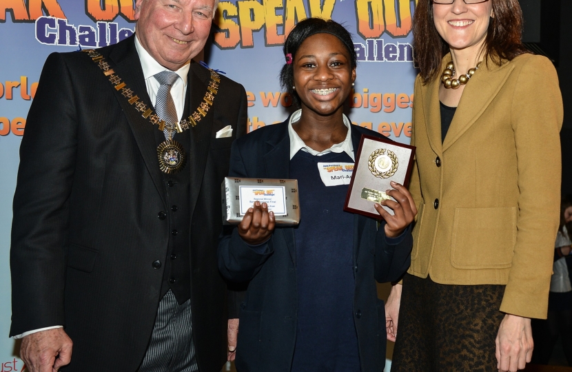 MP for Chipping Barnet, Theresa Villiers, has paid tribute to the work of the Jack Petchey Foundation after attending a public speaking competition for teenagers in Barnet, hosted by Friern Barnet School, Hemington Avenue.